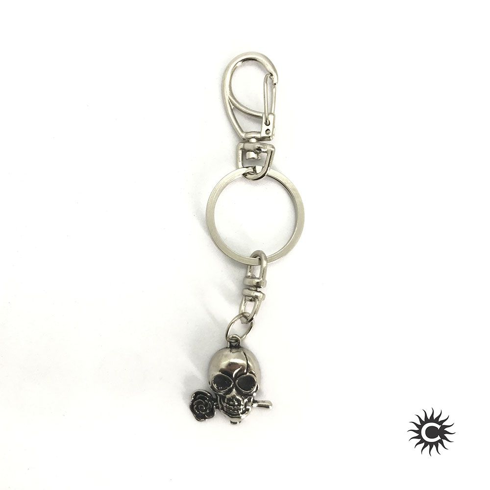 CHAVEIRO CRÂNIO COM ROSA 13CM METAL NQ