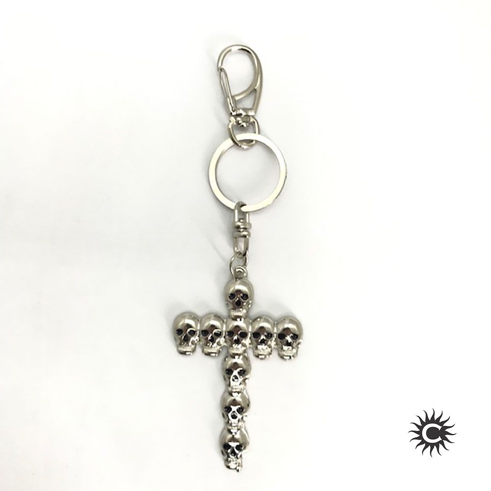 CHAVEIRO CRUZ DE CRÂNIO 13 CM METAL NÍQUEL