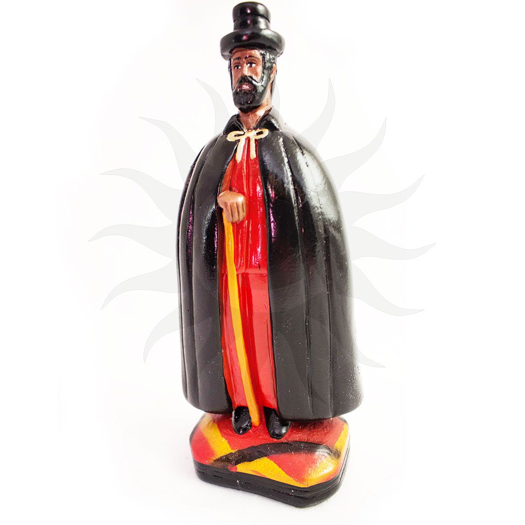 Imagem de presença sóbria e profundamente enraizada na força espiritual, a representação de Capa Preta em gesso, com 20cm, transmite autoridade, proteção e domínio silencioso dos caminhos. Sua energia é firme e estratégica, revelando a atuação de uma entidade que trabalha com discrição, sabedoria e grande poder de observação.