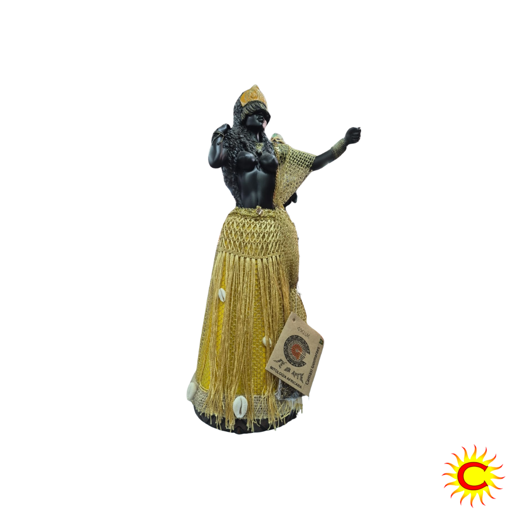 A Imagem de Oxum da linha Camasi é uma representação sublime da Orixá do amor, da fertilidade e da prosperidade. Com 40cm de altura, esta peça exala a delicadeza e a força das águas doces, sendo ideal para quem deseja honrar a "Rainha do Ouro" com o máximo de respeito e beleza. A marca Camasi é reconhecida internacionalmente pela perfeição em suas esculturas, capturando com maestria a expressão serena, as joias detalhadas e o movimento gracioso de Mamãe Oxum.