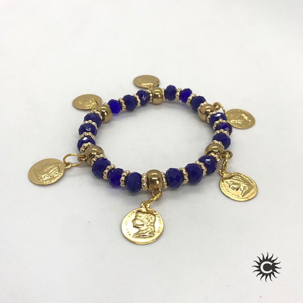 Pulseira - Cigana Azul Escuro Cristal E Silicone Com Moedas