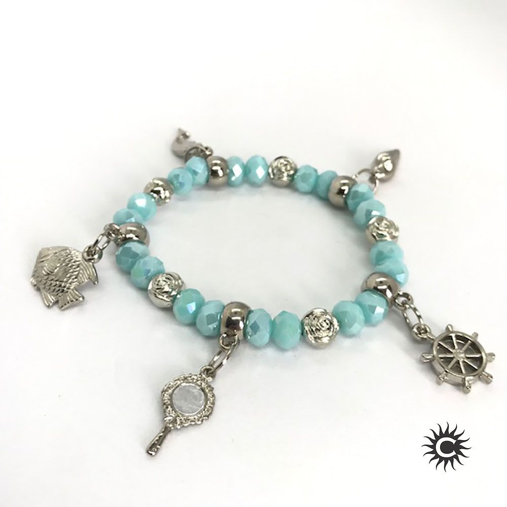 Pulseira - Iemanjá Azul Claro Com Abb Cristal E Silicone Luxo