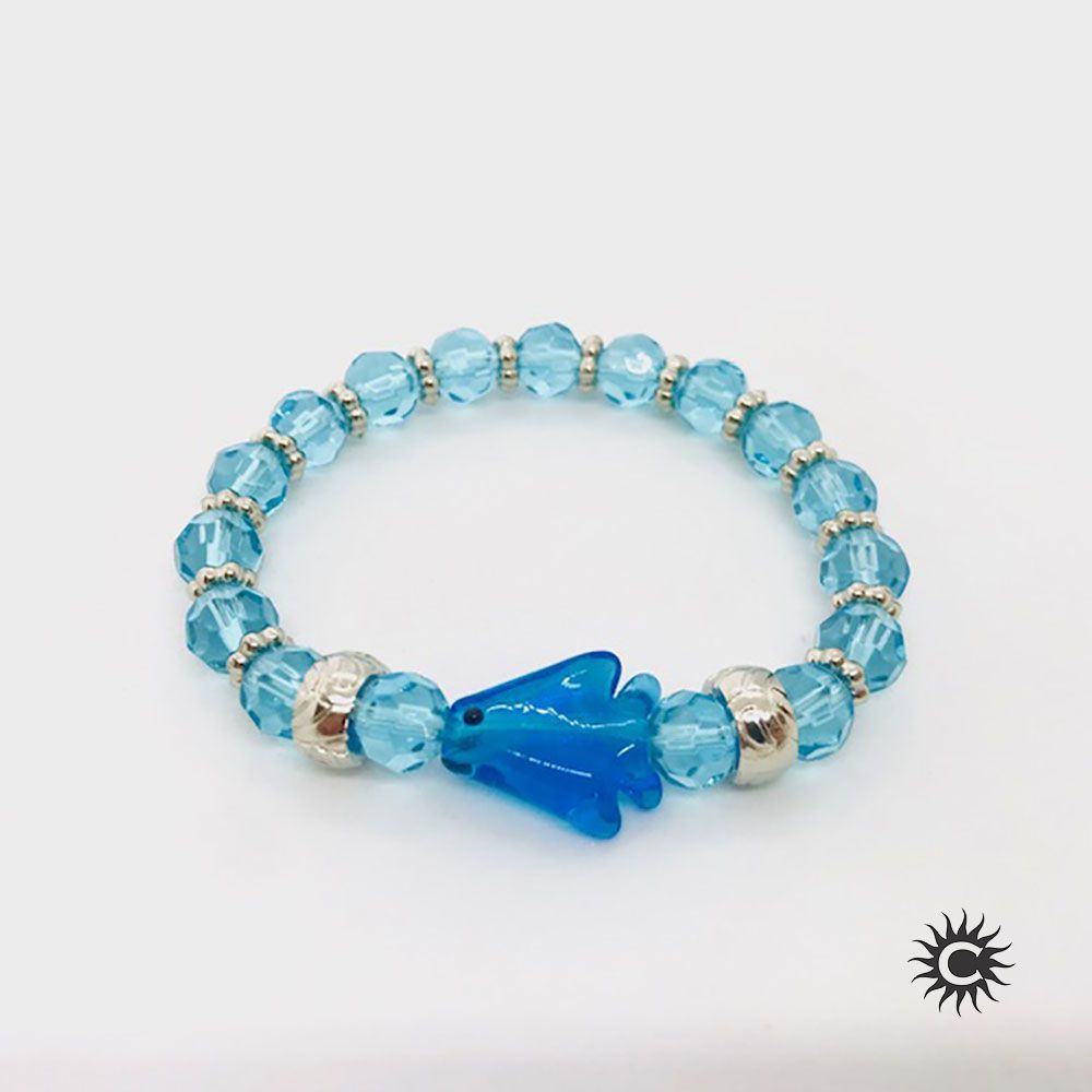 Pulseira - Iemanjá Peixe Azul Cristal E Silicone