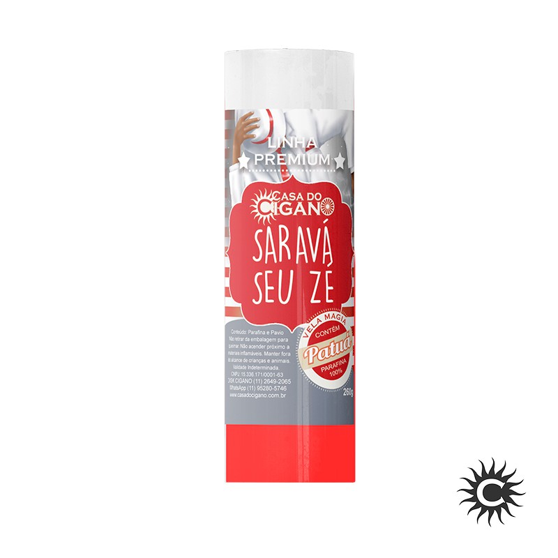 Vela 7 Dias Saravá Seu Zé c/ essência e patuá - Linha Premium Casa do Cigano